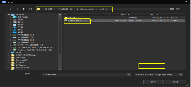 重新打开Mrt工程时,三维场景的相机将自动定位到预设的起始位置。