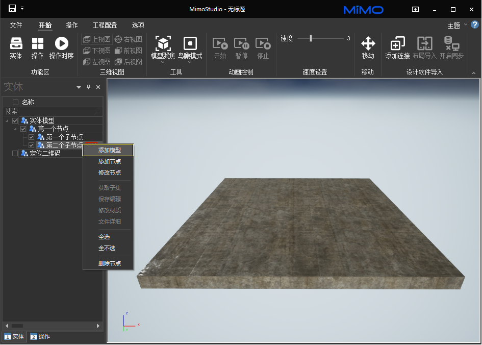 在大纲树中的节点的右键菜单中,选择【添加模型】。